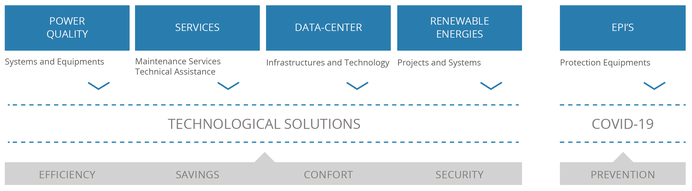 SENSYS was created from the union of several different firms and the specialization of their human resources in four distinctive areas, Power Quality, Services, Data Center and Renewable Energies. For each of these areas strategic alliances were established.